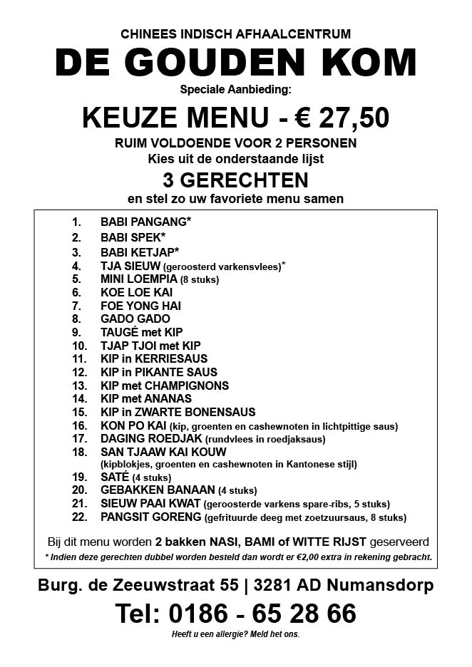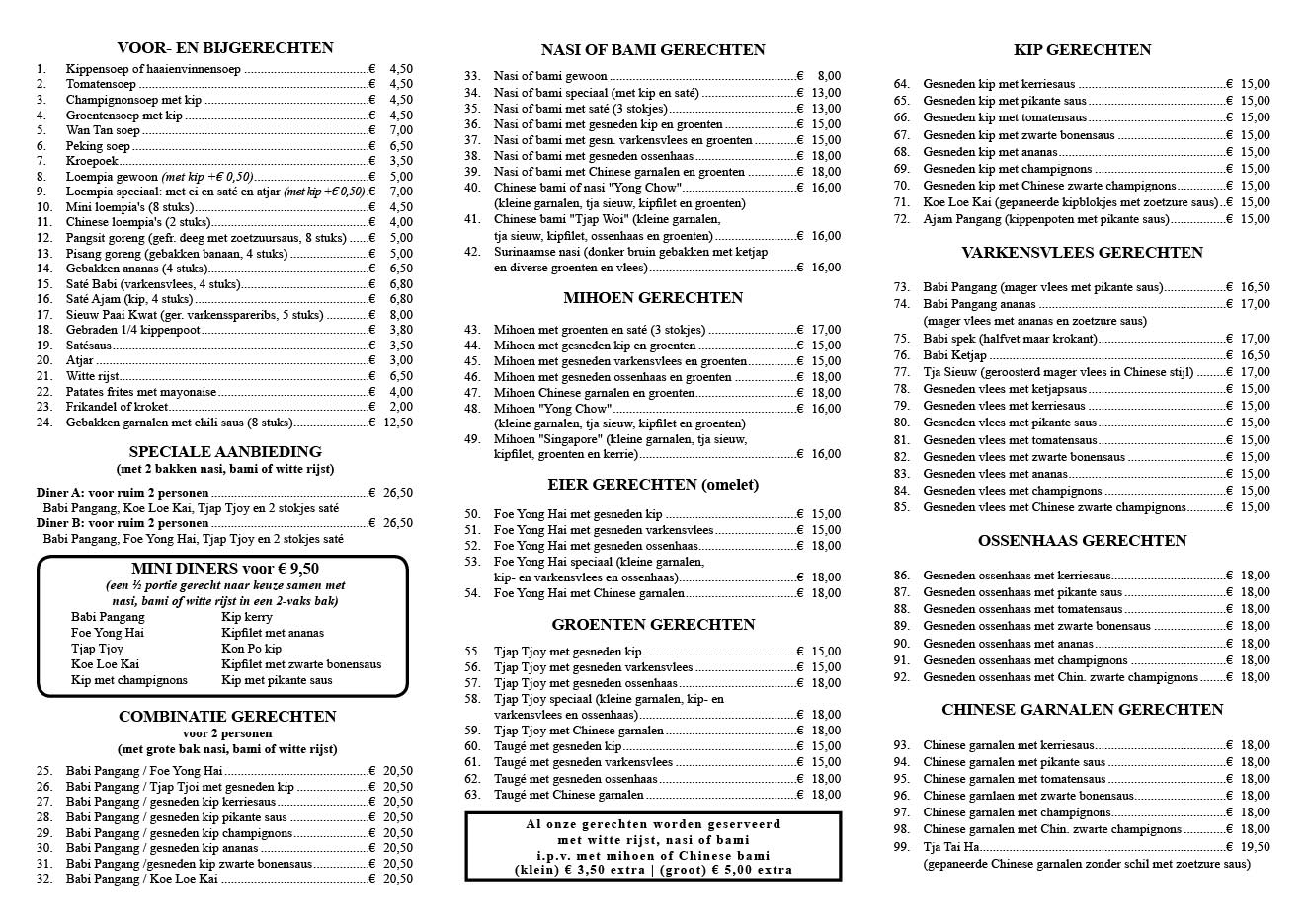 Hier vindt u onze menukaarten. Klik op de menukaart om hem gelijk te openen in een nieuw tabblad.